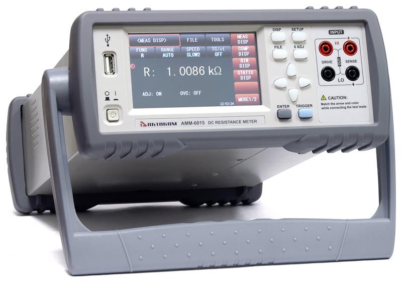 Микроомметр АММ-6015 создан для точных измерений на постоянном токе малых и сверхмалых значений сопротивлений. Высокая точность (0,05%), разрешение (от 1 мкОм) и стабильность измерений обеспечивается использованием в приборе 32-разрядного процессора и SMD технологии.