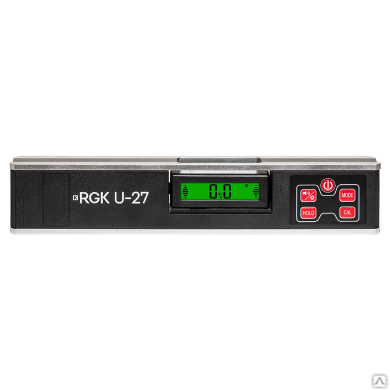 В зависимости от выбранного режима электронный уровень RGK U27 может показывать значение углов в градусах и процентах отклонения от горизонтали. Также имеется динамик, с помощью которого уровень издает звуковой сигнал при приближении к нулевому значению. Тональность сигнала меняется в зависимости от положения прибора, что дает возможность выравнивать строительные детали, не считывая показатели с экрана.